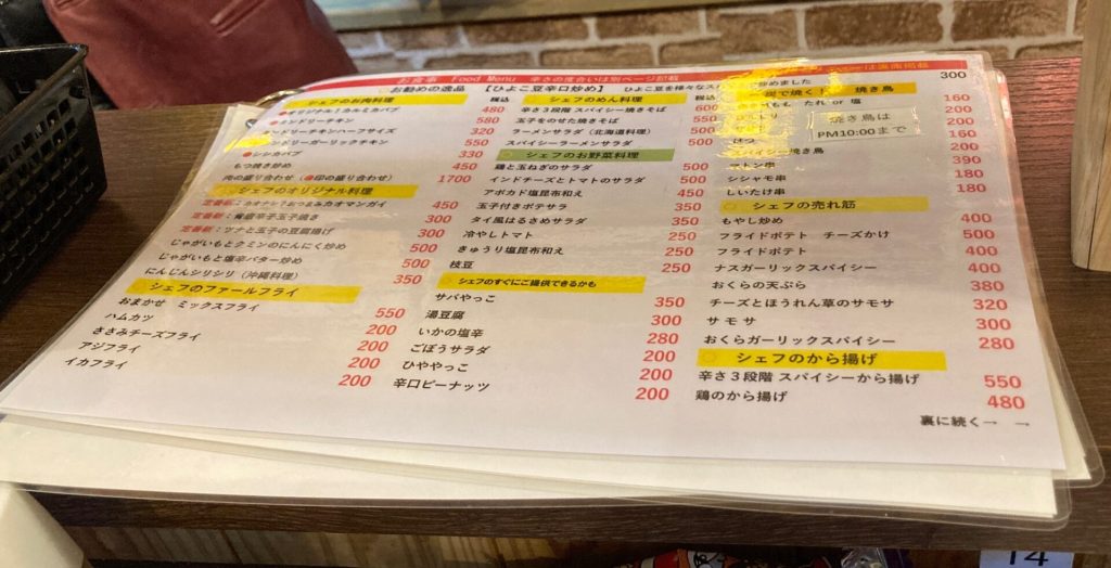 他に、カレーのメニューやご飯もののメニューとか、いっしょに束ねられてました。