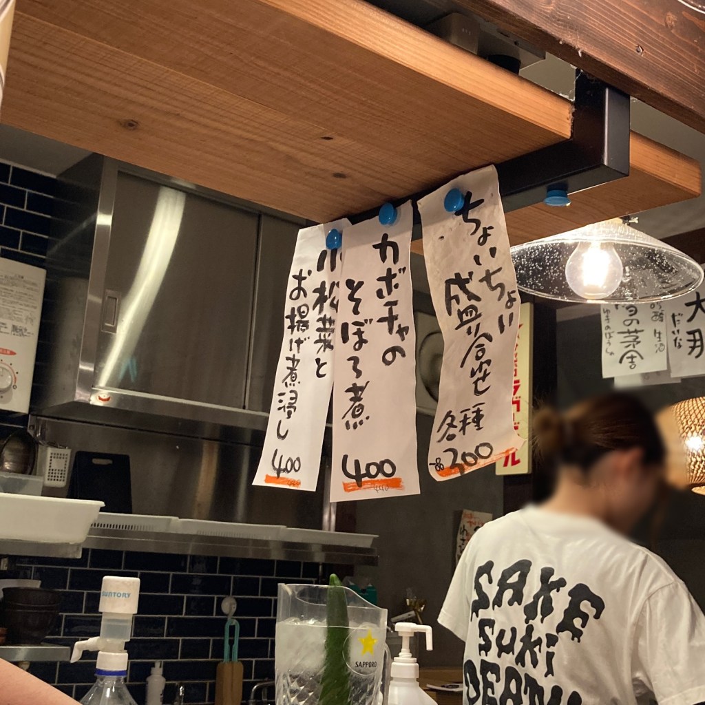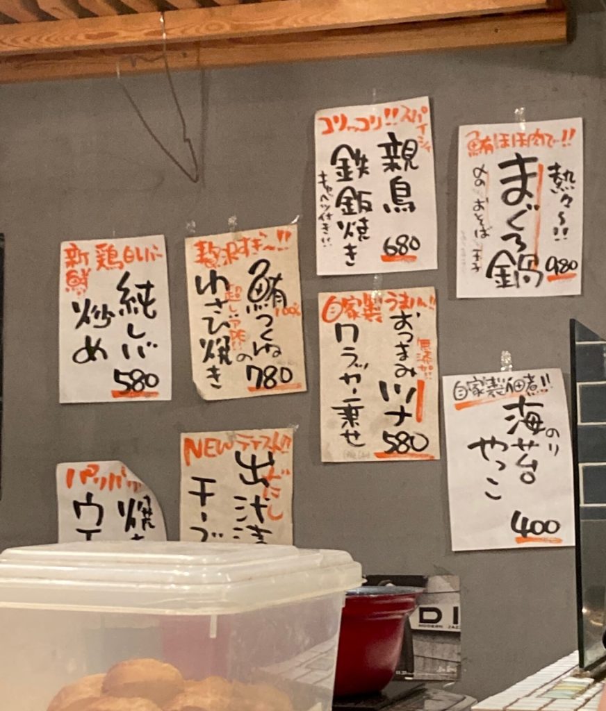 日替わりのおばんざいメニューは、棚の下に貼ってあります。