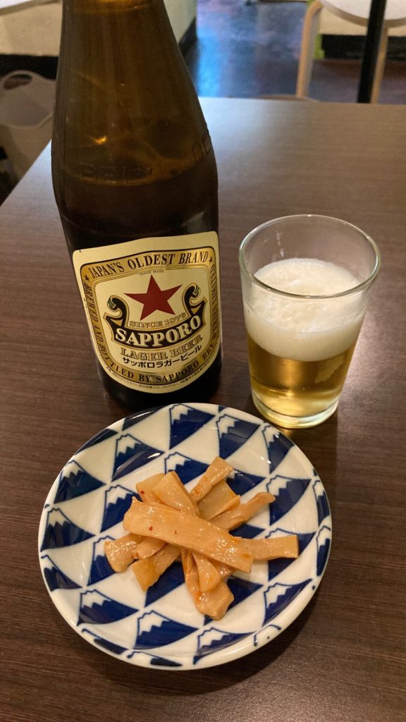 ビールを頼むとおつまみに、メンマをくれました。