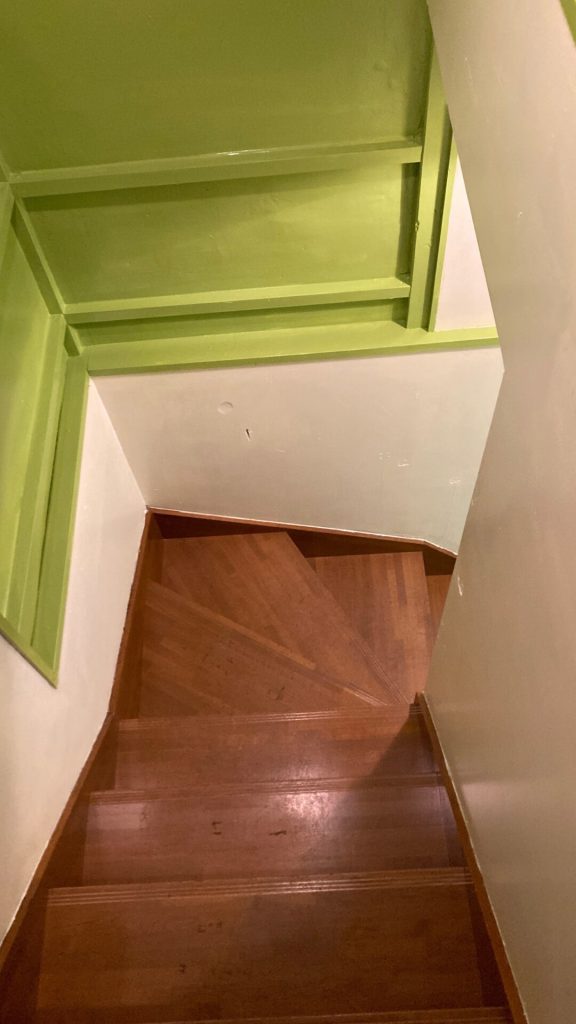 ラーメンができるごとに急な階段の上り下り。