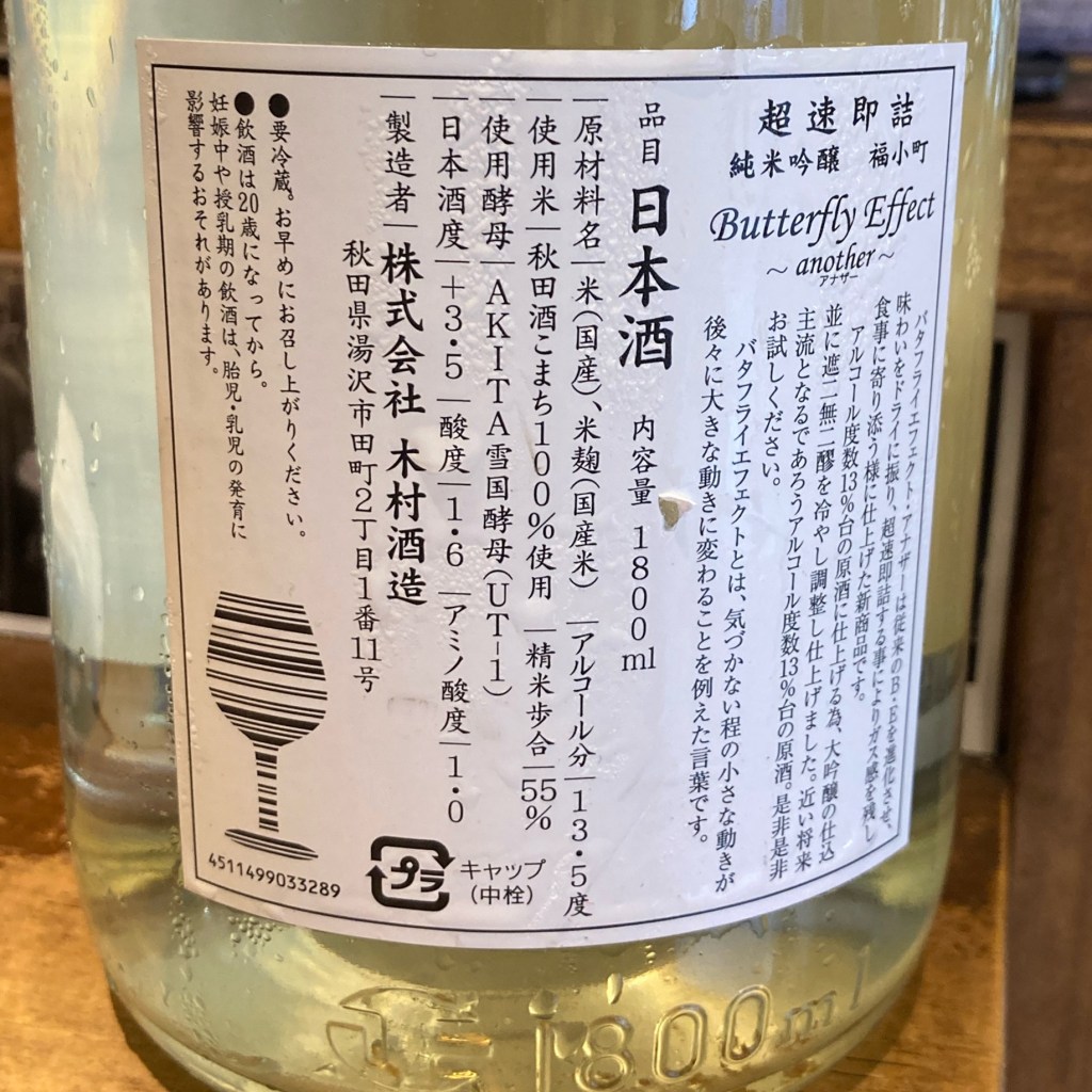 3杯目は、純米吟醸バタフライエフェクトアナザー。